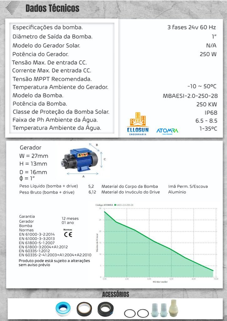Altura Manométrica Máxima – 29 m Vasão Total Diária Máxima – 10 m³