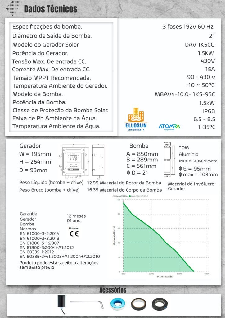 Altura Manométrica Máxima – 95 m Vasão Total Diária Máxima – 50 m³