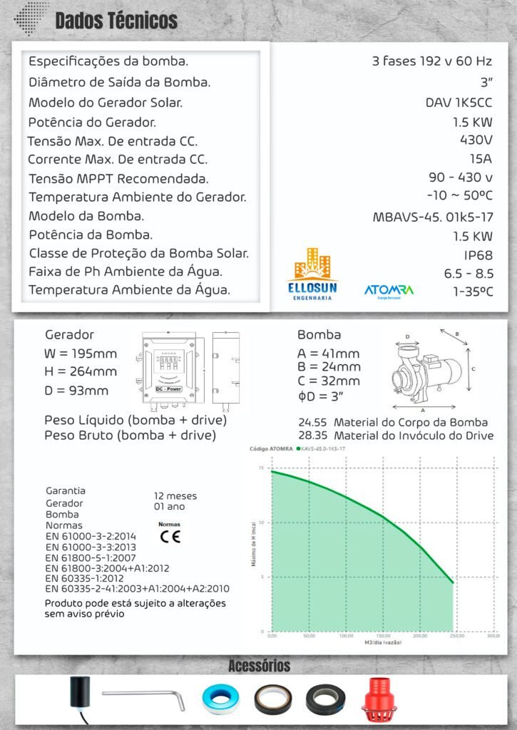 Altura Manométrica Máxima – 17M Vasão Total Diária Máxima – 225 m³